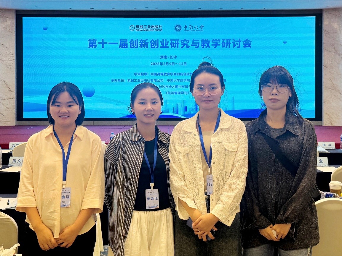 在创新创业教育蓬勃兴起的当下,为深入探索创新创业教学的前沿理念与实践模式,会计学院四名教师郭美娣、吕晓玥、刘心馨、张含笑于5月9日-11日前往湖南省长沙市,参加第十一届创新创业研究与教学研讨会。此次研讨会汇聚了全国众多高校、科研机构及企业界的专家学者,共同探讨创新创业教育的新趋势、新方法与新实践。
