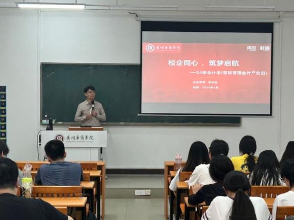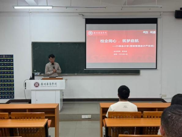 为持续深化产教融合协同育人模式,帮助同学们明晰学业发展方向、精准锚定职业规划、强化班级学风建设,4 月 21 日,广州华商学院会计学院携手用友新道科技,为 24 级、25 级会计学(智能管理会计产业班)全体同学量身打造的主题班会顺利召开。本次班会由企业导师黄云建主讲,分年级设置专属议题,精准赋能不同成长阶段的产业班学子,实现同频成长、同向发力。