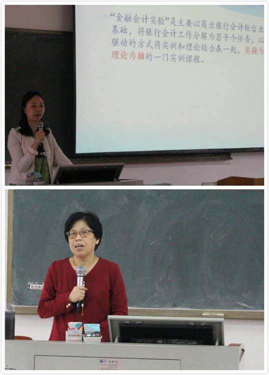 第三位老师是实训教研室的罗述苹老师,罗老师讲授的课程是《金融会计实验》,讲授内容为“商业银行柜台业务”,主要是以银行会计柜台业务为基础,将银行会计工作分解为若干项目,并在实际操作中应注意的事项等内容。蒋国珍老师对罗老师的授课给以了很高的评价,她认为罗老师对银行柜台业务极其熟练,讲课条理清晰,层次分明,应注意到的事项又能做特别提醒。
