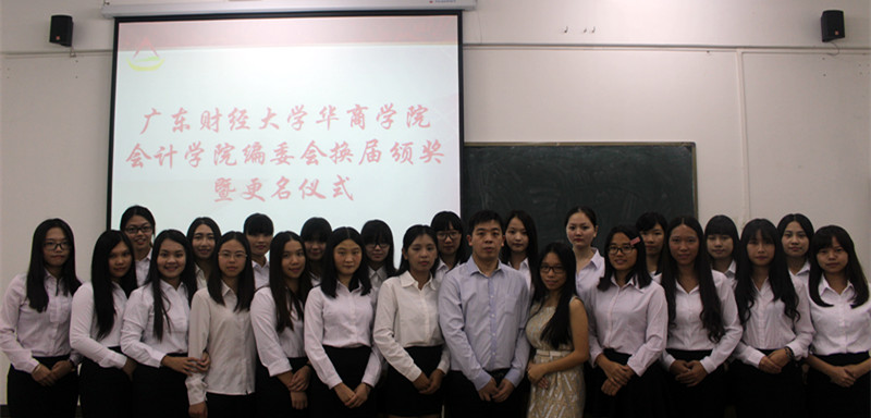 10月15日晚上7时,华商会计学院编委会换届表彰大会暨更名仪式在励志楼B402教室隆重举行。会计学院许娜副院长,编委会主编杨烨瀚老师和副主编吴鳗础一同出席本次仪式。