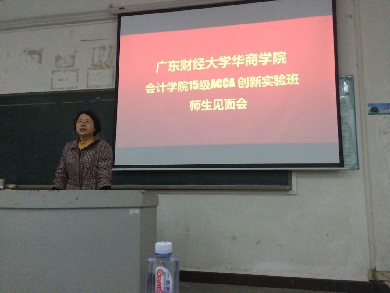 晚7点,广东财经大学华商会计学院15级ACCA创新实验班师生见面会在励志楼A102隆重举行会计学院院长马玉珍、副院长巴雅尔、辅导员童蓉、班主任陈蒙梦等领导和老师出席了本次会议。