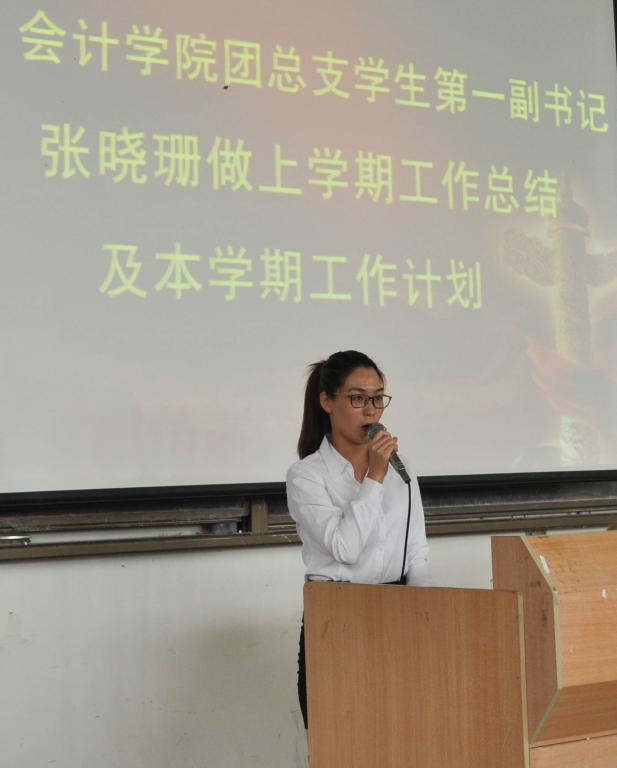 会上,团总支学生会第一副书记张晓珊总结了团总支学生会上一学期的工作,并提出了自己对团总支学生会的工作建议。希望各部门人员能够互相合作,协同一致,促进团学工作的有效开展,为会计学院争得更多荣誉,为团学培养出更多的坚实力量。