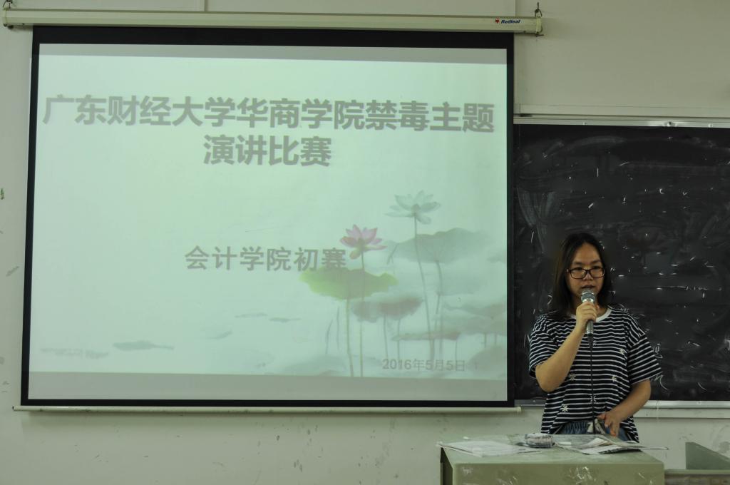 为了向学生普及毒品预防知识、增强学生的禁毒意识、提高学生自觉抵制毒品危害的能力,由荔城街道办事处、共青团广东财经大学华商学院学生会承办、各系团总支学生会协办的禁毒主题演讲比赛——会计学院初赛于5月5日中午12点在厚德楼C405-C410举行。
