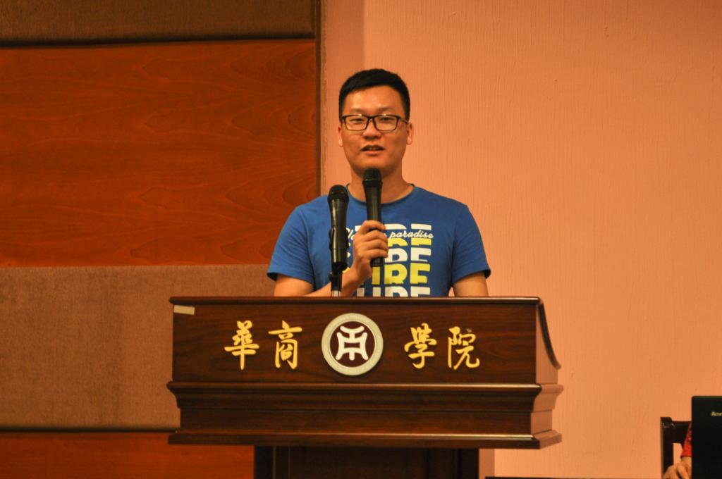 大会首先由会计学院13级年级主任代表陈洋广进行致词,他分享了自己的大学经历以及担任学生干部的体会,希望团学的各位干事能够有始有终,立足自己的岗位做贡献。