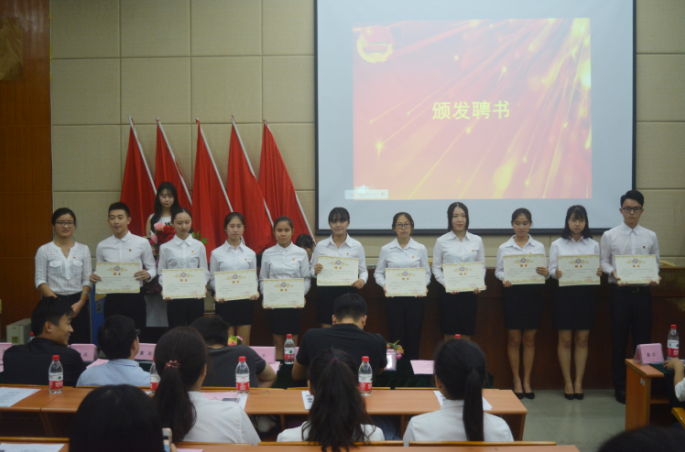 接着,学生会主席代表会计学院第三届团总支学生会向大会作了工作报告。陈洋广老师、陈丽敏老师、梁银雄老师和苏博云老师分别给第三届的常委团、部长、副部长和干事颁发聘书。团总支书记梁银雄表示:聘书是对干部们的肯定,希望下一届干部能够继承上届的优良传统,认真总结,发挥优势,完善自我,开拓思路,求实创新,成就更好的团学。