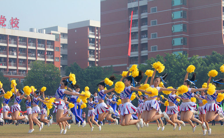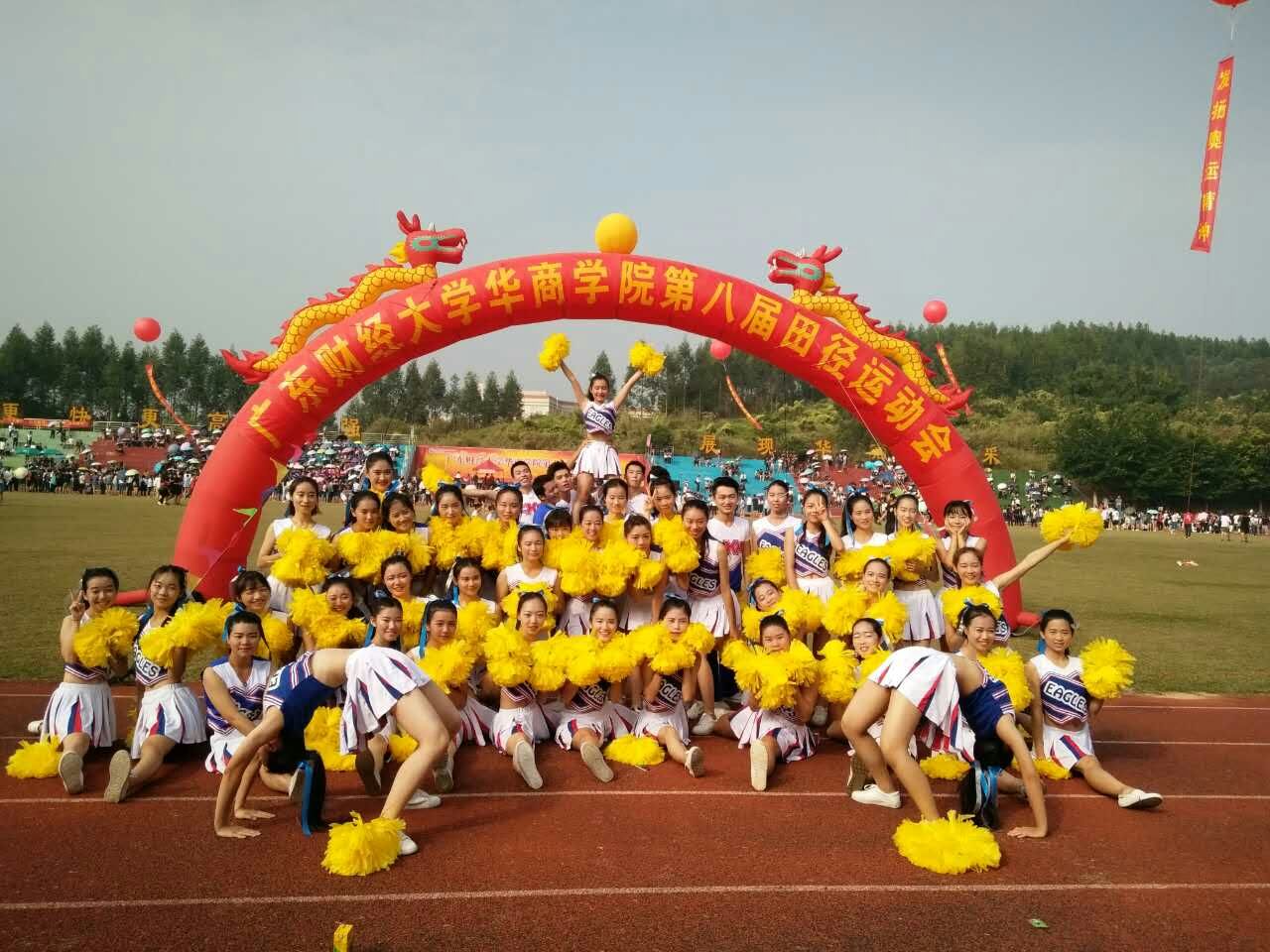 在裁判员代表朱宁宁和运动员代表唐伟宣誓后,陈玉川院长宣布:“广东财经大学华商学院第八届田径运动会开幕式正式开始!”紧接着,就是开幕式最精彩的环节——学院八大系的啦啦操比赛。会计学院啦啦操队第六个出场,绚丽多彩的服装,整齐划一的动作,青春有力的舞姿,给全场观众留下深刻的印象,最终以94.74分的成绩荣获得第二名,而工商管理系以95.1分的成绩获得了第一名,经济与金融系以94.02分的成绩获得了第三名。
