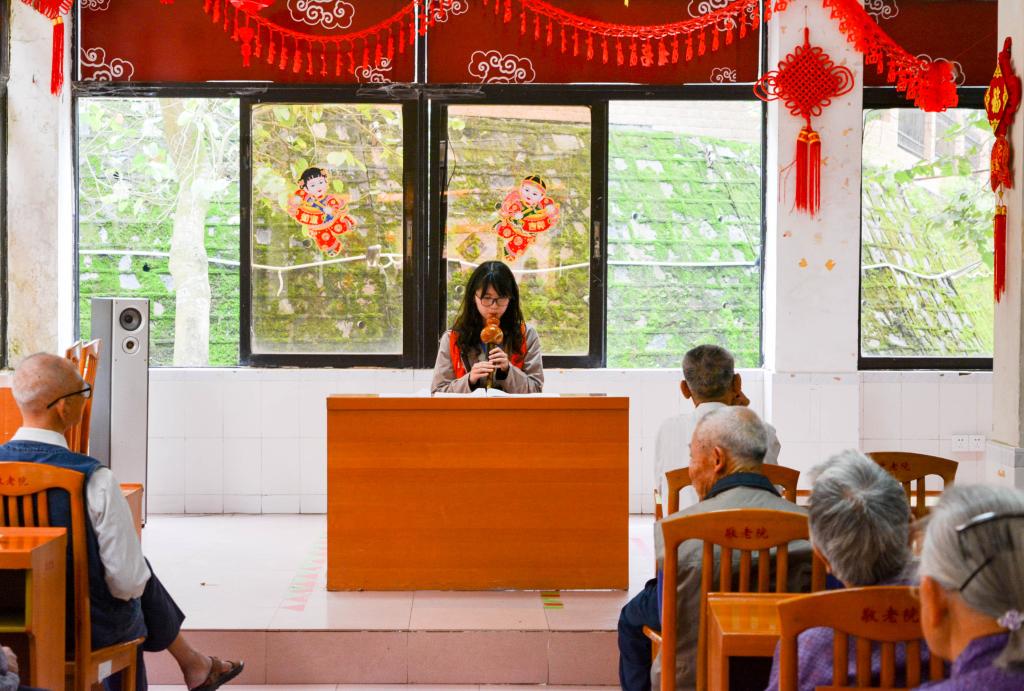 在活动中,志愿者们结合敬老院老人们的喜好,展现了多种多样的表演活动形式,主要包括葫芦丝伴奏红歌、女声独唱、扇子舞老歌伴、男女合唱《海阔天空》、月光下的凤尾竹和爵士舞、民族舞伴葫芦丝等表演给老人们带来听觉和视觉的享受,现场充满了欢声笑语。