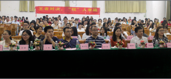 2017年5月23日19:00,广东财经大学华商学院第二届“税收杯”营改增大赛决赛在励志楼C308隆重举行。会计学院副院长巴雅尔,团总支书记梁银雄,学生会指导老师苏博云,王敏、昝文华、张丽、马玉娟老师等嘉宾出席本次大赛。增城国税局税政科科长夏文斌、办公室魏健怡同志也莅临比赛现场。