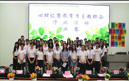 为了普及心理健康知识,增强学生心理素质,2018年5月22日18:20,由华商会计学院学生心理健康站主办的心理健康教育月主题班会评比活动决赛在励志楼B207拉开帷幕。指导老师黄小花、外语系心语轩等兄弟学院心康站代表出席了本次活动。