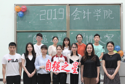 为了弘扬会计学院学子自强自立精神,树立优秀励志学生典型.2019年4月29日19:00,会计学院“自强之星”大赛于励志楼D208举行。2016级年级主任叶颖瑜、学生第3党支部书记梁银雄、勤工助学部指导老师王丽军担任本次评委。