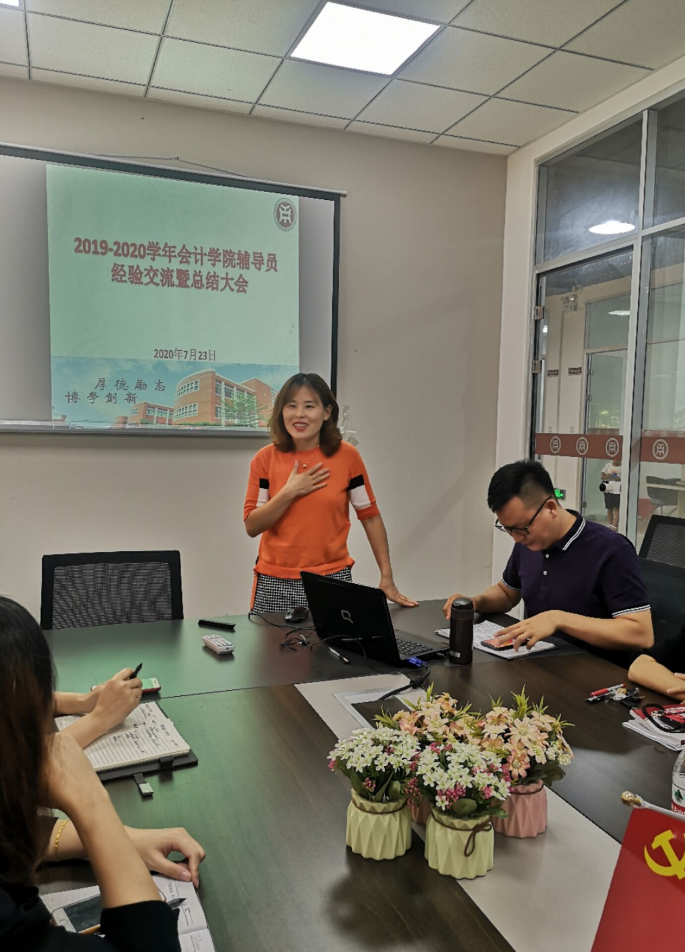 为加强辅导员队伍建设,提高辅导员业务能力和工作水平,7月23日下午,我院在会计学院会议室召开了2019—2020年辅导员经验交流暨总结大会。副校长兼会计学院院长陈美华,学生处处长李希恒,校长助理兼会计学院副院长许娜及会计学院全体辅导员参加了会议。会议由会计学院学工办副主任陈洋广主持。