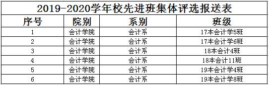 会计学院先进班集体名单如下: