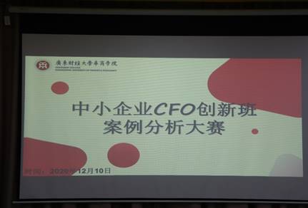 12月10日晚上,会计学院在会计学院学术报告厅开展了中小企业CFO创新班财务案例分析大赛。财务系主任陈云教授,财务系副主任杨俏文副教授,杨洛新教授,杨旻副教授,郑朝亮副教授,杜惠连副教授,财务分析师教研室主任叶国安,中小企业CFO负责人、公司理财教研室主任姚永红,辅导员杨春霞以及财务系各位老师等领导嘉宾参加本次大赛。参赛选手各显神通,呈上一台精彩绝伦、干货满满的财务案例研讨展示会。