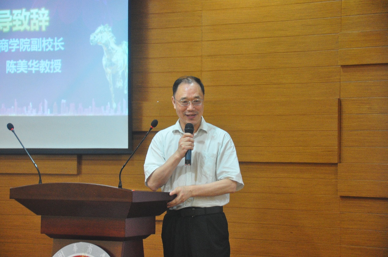 接着,德永信集团总经理冼朝卓先生致辞。冼总首先感谢广州华商学院各位领导对德永信集团的认可,感谢华商学院提供校企合作的机会,并对获奖同学表示热烈的祝贺。冼总精简地介绍了德永信集团的历史与发展,他指出,人才是德永信发展的核心力量,公司以培养人才为责任,而公司有丰富的实操案例库,这在一定程度上能加快学生的成长。最后,冼总期待校企合作再创佳绩。