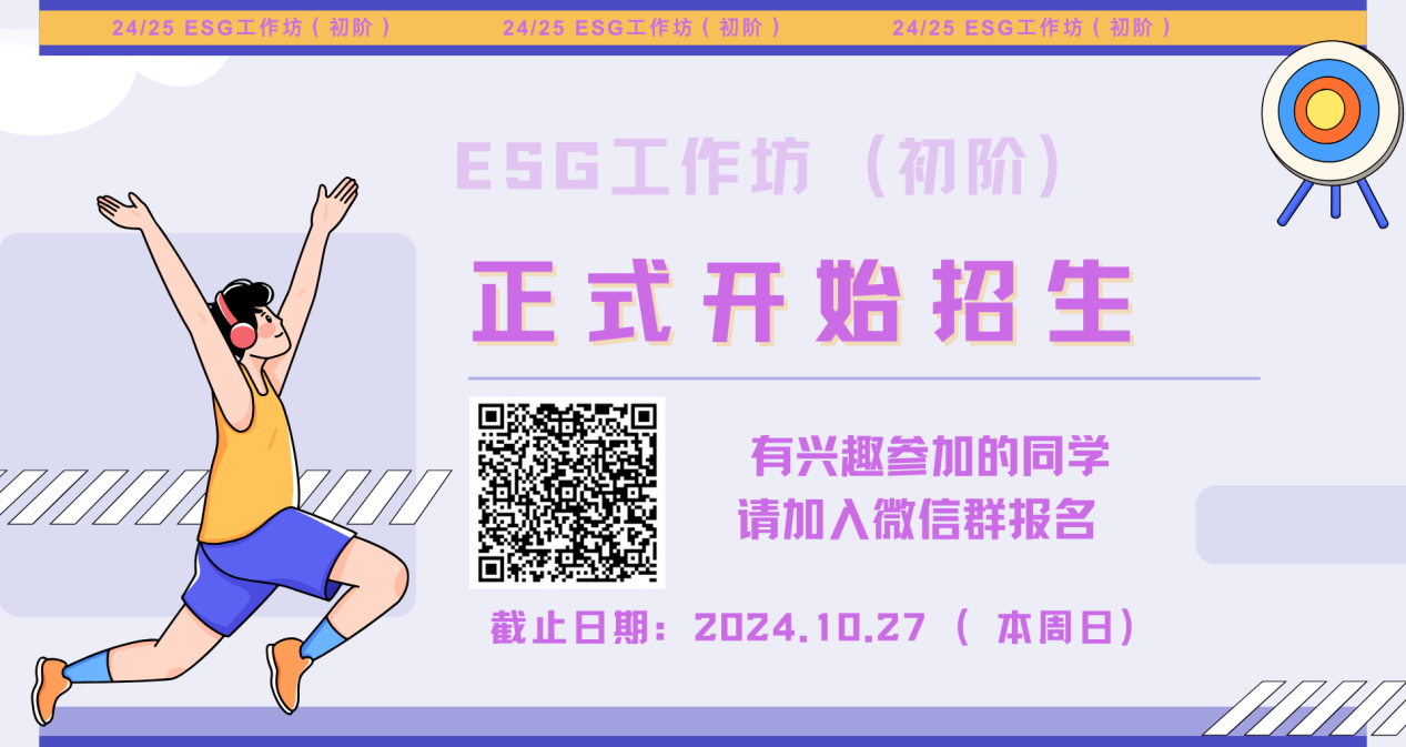 你是否渴望提升专业素养,拓宽职业发展路径?你是否主动适应时代的发展趋势,提升自我价值?如果你的答案是肯定的,那么参加“(初阶)ESG报告工作坊”将使你在未来职场中更具有竞争力!