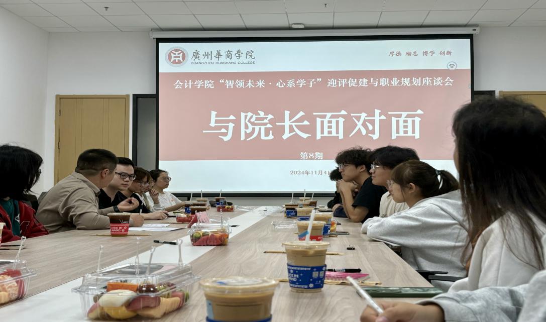 倾听学生声音,探讨教学改革路径,引导学生成长长才,11月4日中午,会计学院于肇庆校区2号楼216隆重召开“与院长面对面”第8期——“迎评促建与职业规划”座谈会。会计学院周书域副院长、谢枫涛老师以及2024级15名学生代表参加。