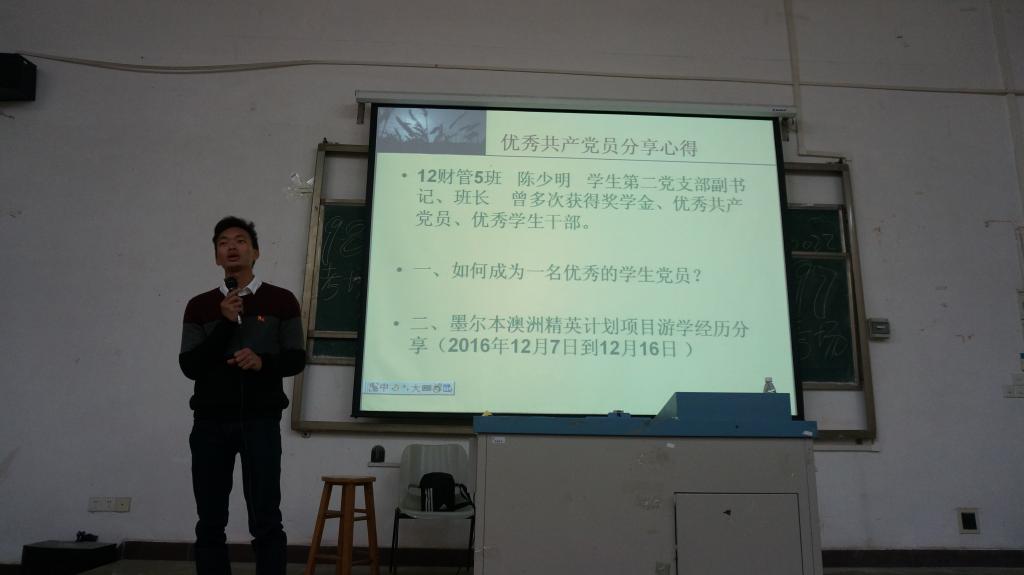 2015年12月20日上午10点20分,会计学院学生第二党支部书记李冠恩老师在励志楼D208对本支部的全体党员上了一场精彩的党课。