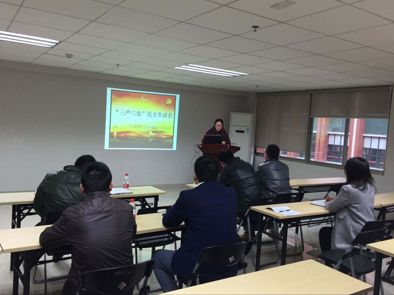 2016年1月21日下午,广东财经大学华商会计学院围绕“严以修身、严以用权、演绎律己,谋事要实,创业要实、做人要实”主题,进行了集中学习研讨,党总支副书记许娜主持学习研讨,会计学院党总支组织委员叶振斌、会计学院教工党支部书记王敏、会计学院教工党支部宣传委员关佩及学生第一党支部书记杨李军、第二党支部书记李冠恩、第三党支部书记袁善福、第四党支部书记陈洋广、第五党支部书记冯金兰等参加学习研讨。