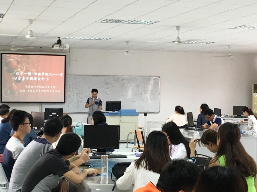 为了进一步坚定理想信念,提高党性觉悟,增强政治意识、大局意识、核心意识、树立正确的政治方向,严守政治纪律,在学习生活中起先锋模范作用,华商会计学院教工党支部在4月26日于厚德楼A507召开了学习党章专题报告会,会议主要围绕着“学党章党规、学系列讲话、做合格党员”开展形式多样的主题学习活动。