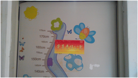 为加大“党建进公寓”活动的宣传力度,让广大同学们了解此次活动的目的和意义,学生党员利用周末进行了前期宣传工作。2016年5月7日,学生党员在会计学院学生公寓一楼粘贴海报。海报内容分三栏,分别是工作机制、工作小组和党务公告,其中工作机制栏介绍了本次党建项目的意义和工作内容,工作小组内贴有负责各栋宿舍的党员照片和基本信息,党务公告处则用于宣传党支部的活动和相关的时事政治。此外,每个党员宿舍门口也贴着“党员责任公寓”的牌子,除了在带领公寓中的同学建设文明宿舍的同时,我们党员也接受群众的监督,从自己做起,从党员做起,树立先锋模范榜样。