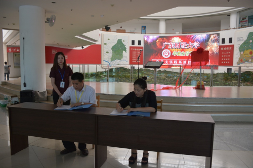 接着,增城区图书馆王馆长志文与华商会计学院党总支副书记许娜进行协议签署。副局长邹运房、馆长王志文、华商学院党委党委吕书勉、党总支副书记许娜四人共同为华商会计学院党总支实践基地牌匾进行揭牌。