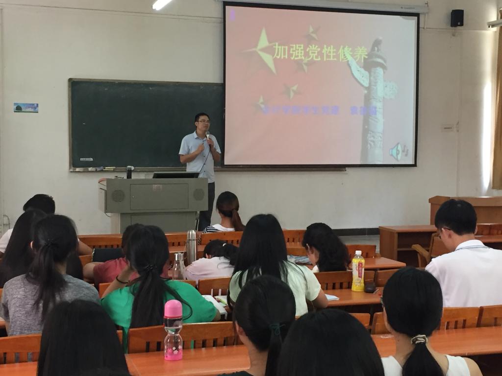 袁书记告诉我们,加强党性修养,主要从以下三个方面学习:1、要在学习上作表率,既要学好本专业的知识,同时还要加强理论修养,真正做到“不但在组织上入党,而且在思想上入党” 2、要率先垂范,在履行责任和义务中加强党性修养。专业学习上认真刻苦,努力钻研;日常生活中艰苦朴素,不讲排场,不铺张浪费;社会实践活动积极参加,努力提高自己解决实际问题的能力和领导水平。3、要严于律已,在抵制腐朽思想侵蚀中加强党性修养。严于律己,洁身自好,宣传先进文化,抵制垃圾文化。 4、要身体力行,在践行核心价值体系实践中加强党性养。