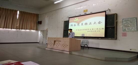 毕业季将至,毕业班学生党员都集中在本周回校参加毕业论文答辩。会计学院学生第一党支部预备党员转正大会也于2017年05月06日下午5:00在励志楼A108正式召开。会议由支部纪检委员曾林冠同志主持,支部书记袁善福老师和86名学生党员全部出席本次会议。
