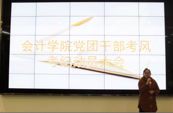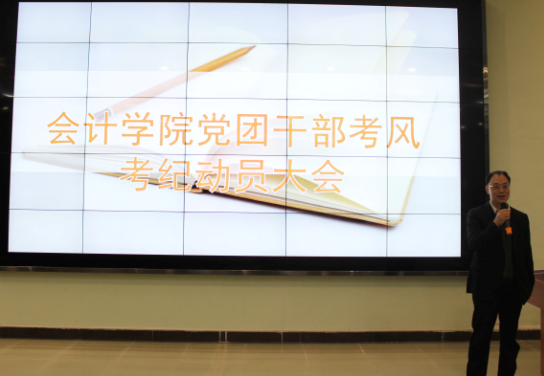 2017年12月25日18:10,会计学院在励志楼C408举行党团干部考风考纪动员大会。会计学院院长陈美华、副院长许娜以及全体辅导员出席本次动员大会。