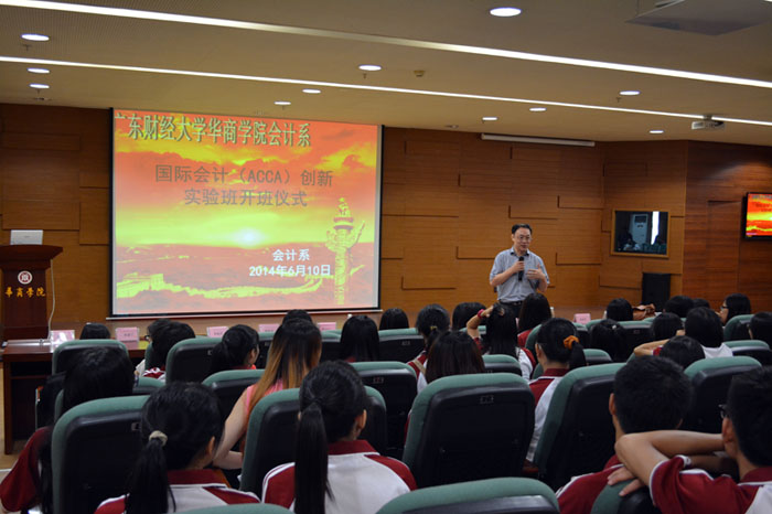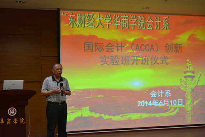 随后,郭银华副院长发表重要讲话。他提出三个希望:希望院方能够精心组织与计划好方案,向开阔学生视野,提高学生就业这一目标前进;希望院方在师资方面提供有力支持,使学生能够系统掌握好ACCA知识;希望同学们可以加倍努力,坚持学习,在ACCA实验班能够有所得。
