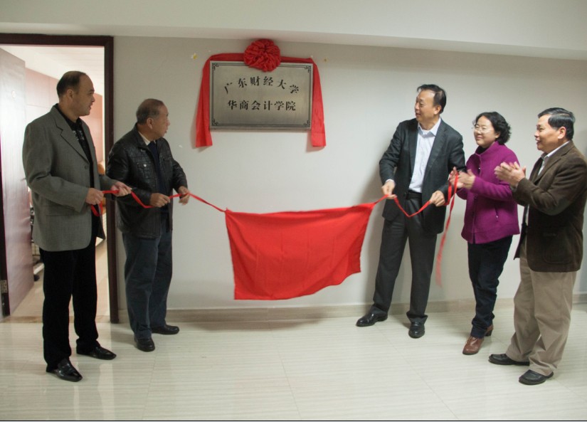 上午10点,广东财经大学华商会计学院成立揭牌仪式在行政楼6楼中庭隆重举行。学院董事长廖榕就博士、院长陈玉川教授、党委书记苏宁、副院长邓基泽等学院领导,各系部、行政部门负责人以及会计学院师生代表出席了揭牌仪式。仪式由王中德副院长主持。