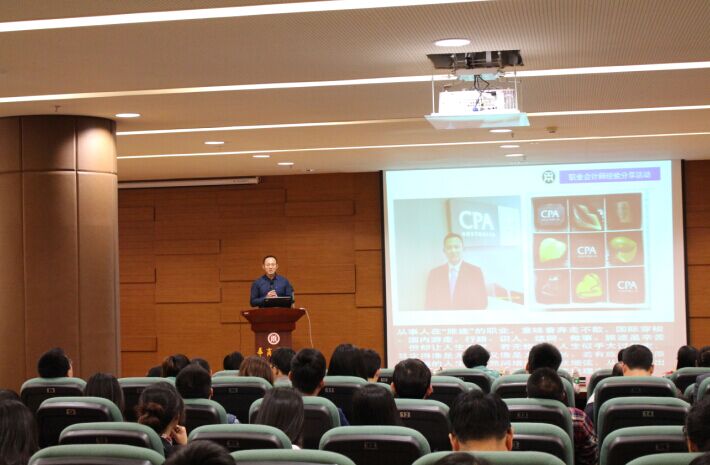 讲座伊始,会计学院副院长许娜老师代表我院热烈欢迎并介绍了张卓奇先生。随后,在观众们热烈的掌声欢迎下,张卓奇先生向我们详细地讲述了注册会计师如今的形势以及如何进入这个工作领域的方法,并通过“专业成就规范,规范成就信誉”的理念向我们细数了CPA的三大职业特征:“专业性”、“规范性”以及“广泛性”。