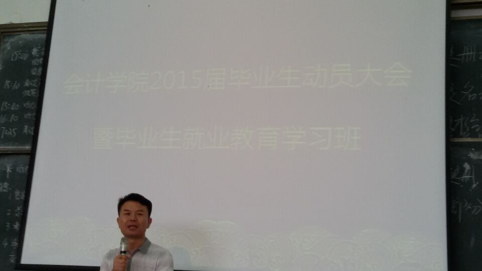 为了使2015届毕业生更好的了解当前的就业形势,消除同学们在就业中的困惑,进一步帮助同学们树立正确的就业观和择业观,会计学院于6月15日上午在励志楼B207隆重召开2015届毕业生动员大会暨就业教育学习班。会计学院院长马玉珍教授、副院长巴雅尔副教授、许娜以及全体毕业班辅导员出席了本次大会。