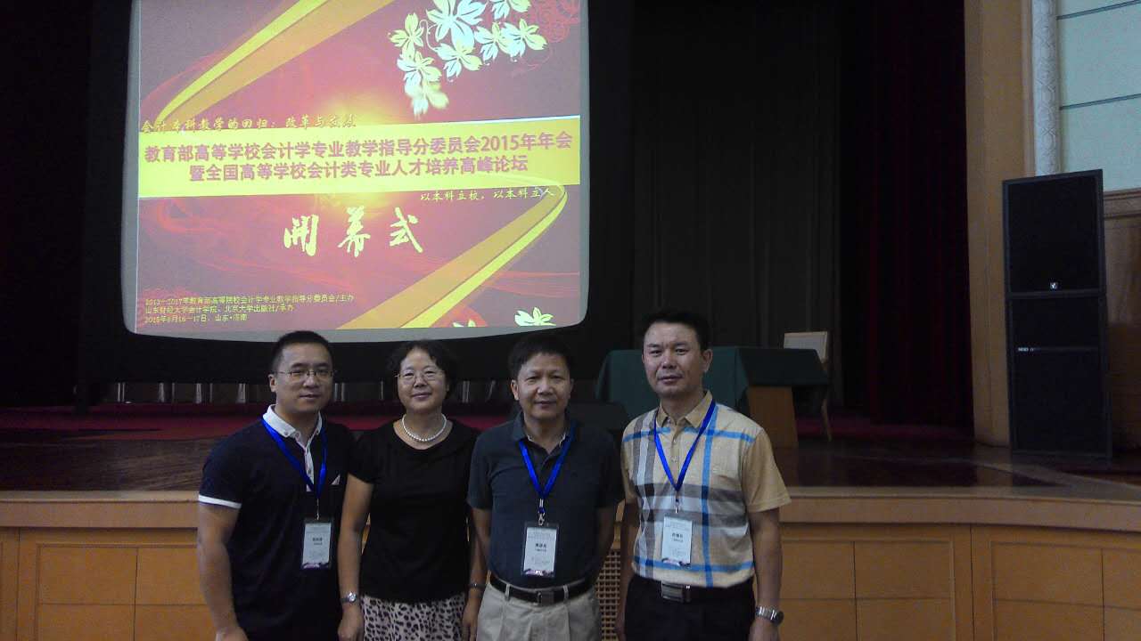 8月16-17日,由教育部高等院校会计学专业教学指导委员会(简称教育部会计教指委)主办,山东财经大学会计学院和北京大学出版社承办的“教育部高等学校会计学专业教学指导委员会2015年年会暨全国高等学校会计类专业人才培养高峰论坛”在济南举行。来自全国80多所高校、300余所会计类专业相关院系、学科负责人、骨干教师参加了本次会议。会计学院马玉珍院长、巴雅尔副院长、张洪浩老师应邀参会。