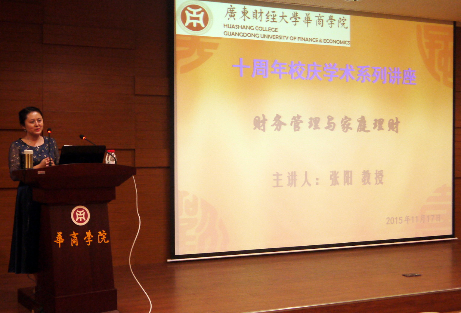 每个人都会花钱,但不是每个人都会理财。为了让同学们明白财务管理与我们的距离,华商学院十周年校庆学术系列讲座之“财务管理与家庭理财”于2015年11月17日下午在图书馆一楼学术报告厅举行。广东财经大学张阳教授作为特邀嘉宾,给华商师生奉献了一场关于财务与生活的精彩演说。