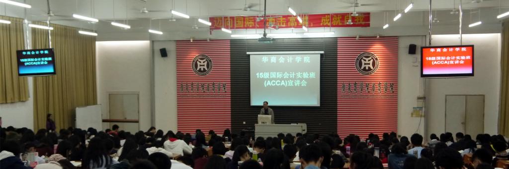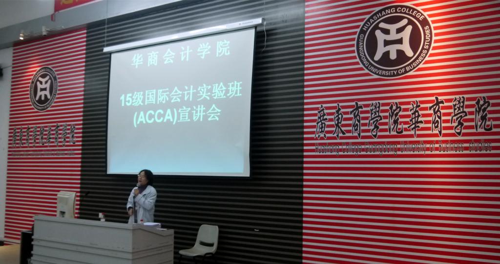 广东财经大学会计学院副院长陈美华教授为同学们分析了目前国内外对高端会计人员的需求状况和ACCA目前的发展状况。广东财经大学和华商学院选择开办ACCA班,是因为ACCA是一种培养模式先进,知识面全,国际认可度最高的会计发展模式,它不仅使同学们的思维能力得到训练,英语平水提高,还能获得国际认可的资格证书帮助就业。