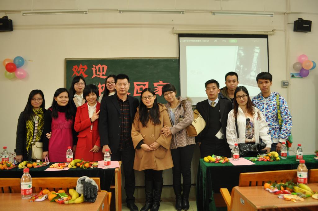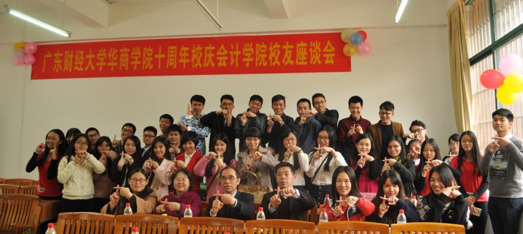 四海校友齐相聚,师生携手迎校庆。下午两点在励志楼D103课室里,学院副院长郭银华、会计学院马玉珍院长出席了本次校友座谈会。郭院长与马院长分别都用了简洁的言语表达了对校友回归母校的热烈欢迎,气氛十分活跃。多年后再次返归母校的校友们也一一上台简略回忆了他们的大学生活,表达他们对母校给予的栽培的感恩,为我们分享了他们毕业后就业、创业的宝贵经验。尽管校友们满怀欣喜,但时间总是不留情的;座谈会在嬉笑中结束了,但曾经的教育之恩、相识之情永远不会结束。