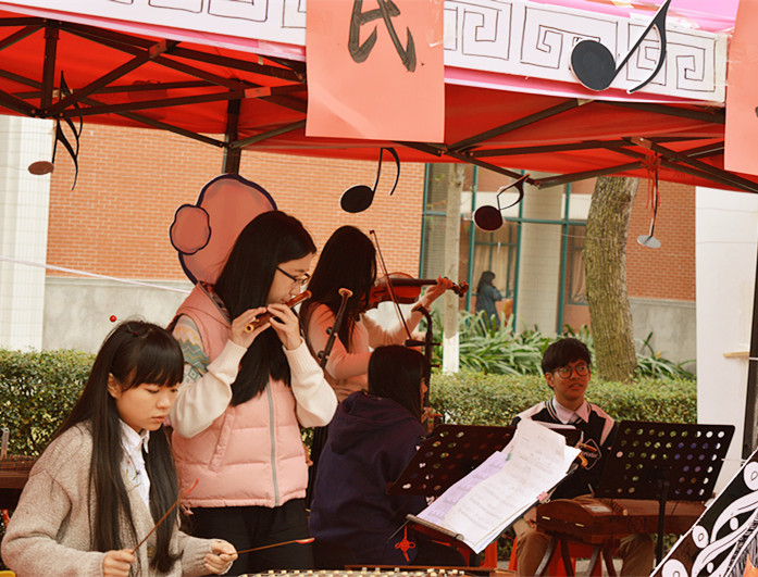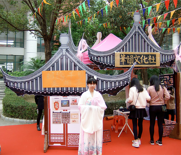 为了给四海而来的嘉宾们展示我院学生的才艺,各个社团在图书馆两旁的校道上摆摊,摊位装饰特别,悬挂设计新颖的海报,展示着他们的课外成果。各社团百花齐放,尽显风采。翔实的文字资料,生动的讲解与介绍,抓人眼球的现场表演,有趣的小游戏,无不令现场老师同学们大开眼界。