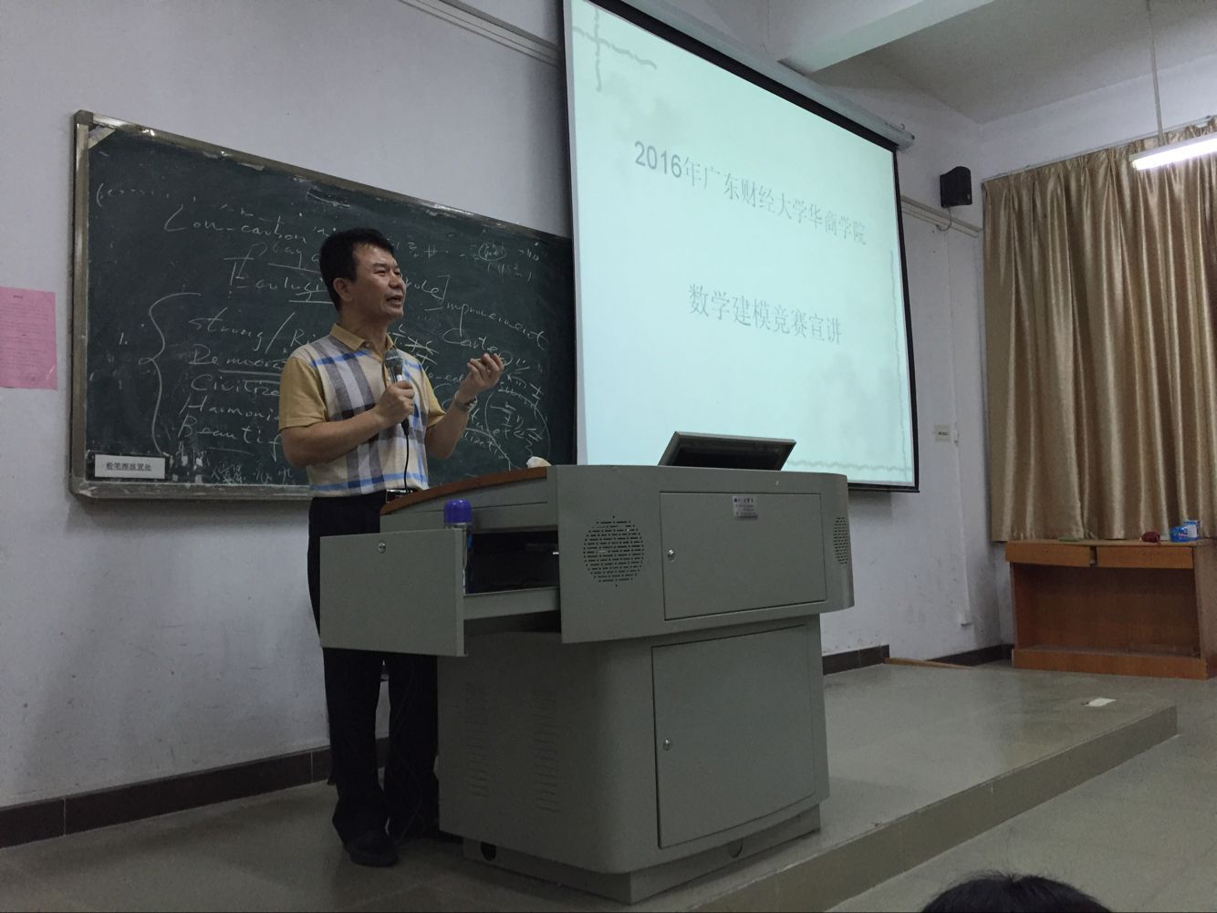 2016年5月16日,广东财经大学华商学院2016年大学生数学建模大赛开班仪式在励志楼B205隆重举行。华商会计学院副院长巴雅尔,华商会计学院数学教研室主任郭战伟,华商会计学院辅导员郗郡红和叶振斌老师出席了本次开班仪式。会议由会计学院巴雅尔副院长主持。