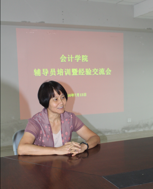 为了进一步加强我院学生工作队伍业务素养,提高辅导员工作能力,7月13日下午,会计学院在行政楼607室举行辅导员培训暨经验交流会。华商学院副院长王锦秀、学生处处长李希恒、副处长熊桂桃、副处长黄国富、会计学院副院长许娜等领导出席了本次会议。会议由会计学院13级年级副主任陈洋广主持。