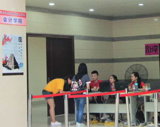 9月7日,广东财经大学华商会计学院2016年迎新工作有序开展,来自五湖四海的1711余名新生陆续报到,加入会计学院大家庭。期间会计学院院长马玉珍、副院长许娜先后到会计学院各个迎新接待点检查指导迎新工作。主管学生工作副院长许娜更是从早到晚,坚持在迎新第一线岗位,热情帮助新生和家长解决各种问题。