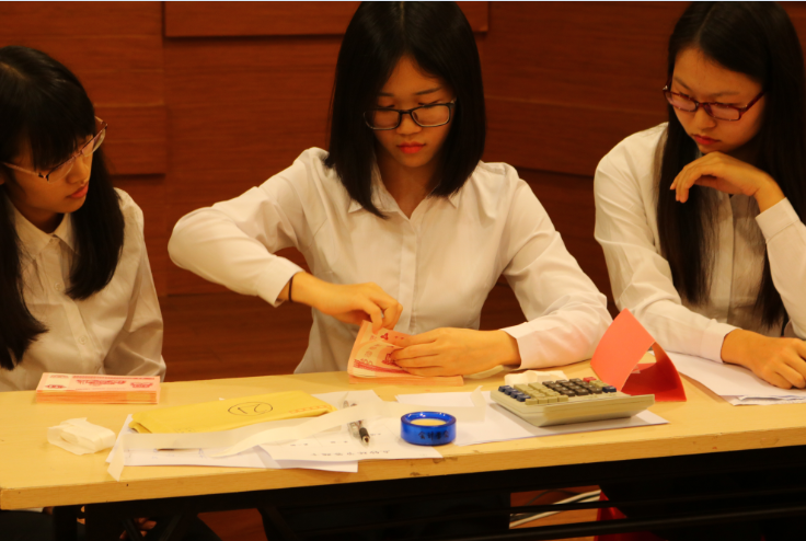 从2000多名参赛者中脱颖而出的六组选手(每组5人)通过专业知识考核、点钞、背背猜和财会辩论等4个环节进行比拼,以最终累计的成绩决出名次。团队协作时那默契的配合,抢答时那快速反应能力,点钞时那娴熟的手法、制作分录时那快速的运算、财会辩论时那生动的语言,让现场的观众们都赞叹不已。各个小组的分数在各个环节不断地交替领先,比赛进行得紧张而激烈。经过评委们评定,第四组获得一等奖,第三,六组获得二等奖,第一、二、五组分别获得三等奖。