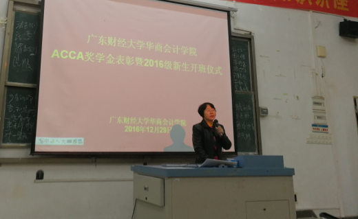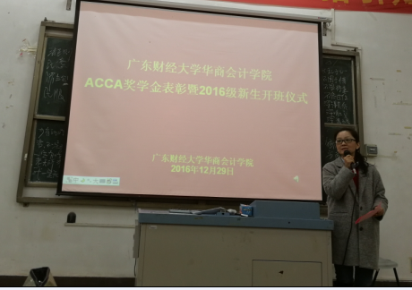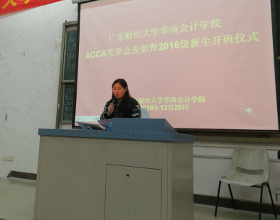12月29日晚上7点,华商会计学院ACCA奖学金表彰暨2016级新生开班仪式在励志楼D208隆重召开。会计学院院长马玉珍、副院长许娜,中博诚通董事师韫、大区经理杨智浩、教学部经理罗金龙以及ACCA各年级辅导员、班主任和全体学生参加了本次大会。