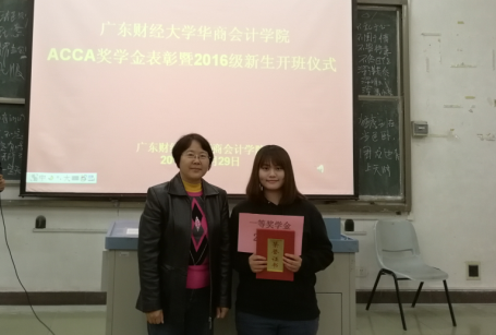 其次,许娜副院长宣读华商会计学院ACCA奖学金评选办法和2016年ACCA学生获奖名单。会计学院领导和中博诚通董事师韫分别为获得一二三等奖学金的ACCA优秀学生颁发了奖金和荣誉证书。一等奖学金获得者——13级ACCA班陈春谨同学作为代表,给同学们分享了ACCA的学习心得和体会。
