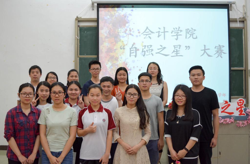 为了弘扬会计学院学子自强自立精神,树立优秀励志学生典型,5月9日晚7点,会计学院 “自强之星”决赛在励志楼D408隆重举行。会计学院14级年级副主任杨烨瀚,艺术团指导老师邱小慧,心康站指导老师刘泽,辅导员叶振斌、冯学珍、王丽军等6位嘉宾担任本次评委。