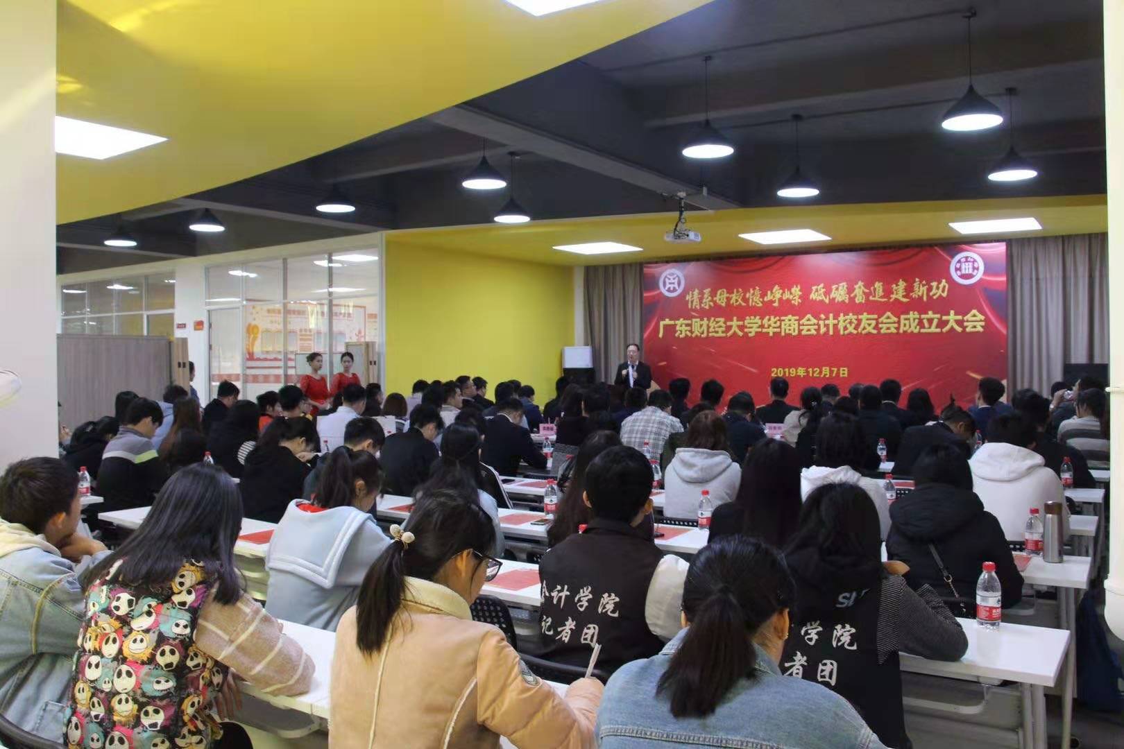 忆往昔,同窗共读,齐蒙师恩;看今朝,志在四方,思源衔环。12月7日上午,广东财经大学华商会计学院校友会成立大会在会计学院报告厅隆重召开。华商党委副书记、副校长王锦秀,副校长兼会计学院院长陈美华,华商职业学院副校长袁国繁,华商校长助理杨宪、余家军、黄伟新、许娜,人事处处长彭强,学生处处长李希恒,招生办主任姚见花,校友工作办主任黄国富、数据科学学院副院长蒋大锐、会计学院副院长巴雅尔、侯春娟等领导出席会议,50余名校友及嘉宾参加了成立大会。大会由2015届校友——会计学院校友会筹备组周大棱先生主持。