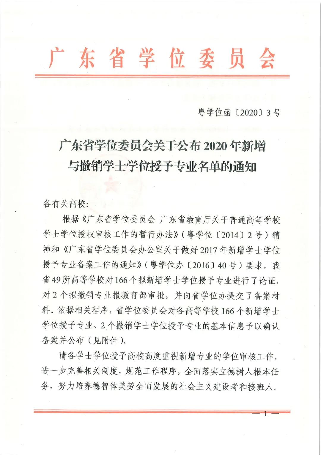 5月25日,广东省学位委员会印发《关于公布2020年新增与撤销学士学位授予专业名单的通知》,批准全省49所高等学校166个本科专业增列为学士学位授予专业。广东财经大学华商学院审计学专业顺利通过评审,获批增列为学士学位授予专业。