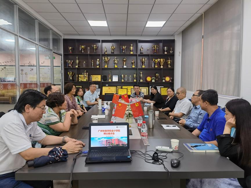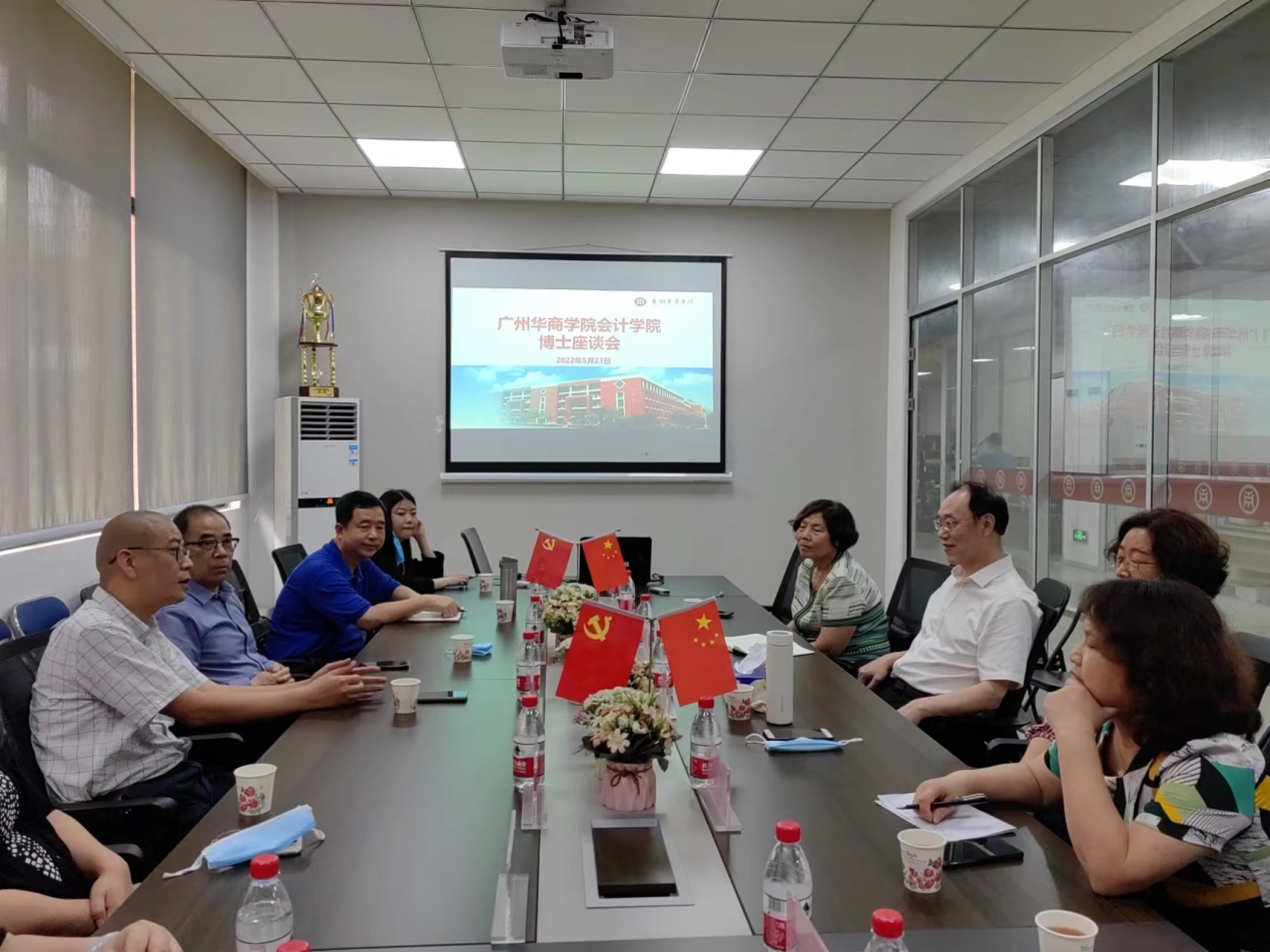 为稳定博士队伍,推进学院重点学科建设、一流本科专业建设点建设、会计专业硕点建设,2022年5月23日下午,会计学院在学院会议室召开博士教师座谈会,广州华商学院执行校长郭银华博士、副校长陈美华博士、高艳荣博士、俞雪花博士、杨旻博士、陈晓东博士、曾伟博士、刘顺玉博士、汪清阳博士、岳柳汐博士、陈平博士参加座谈会。座谈会由副校长陈美华博士主持。