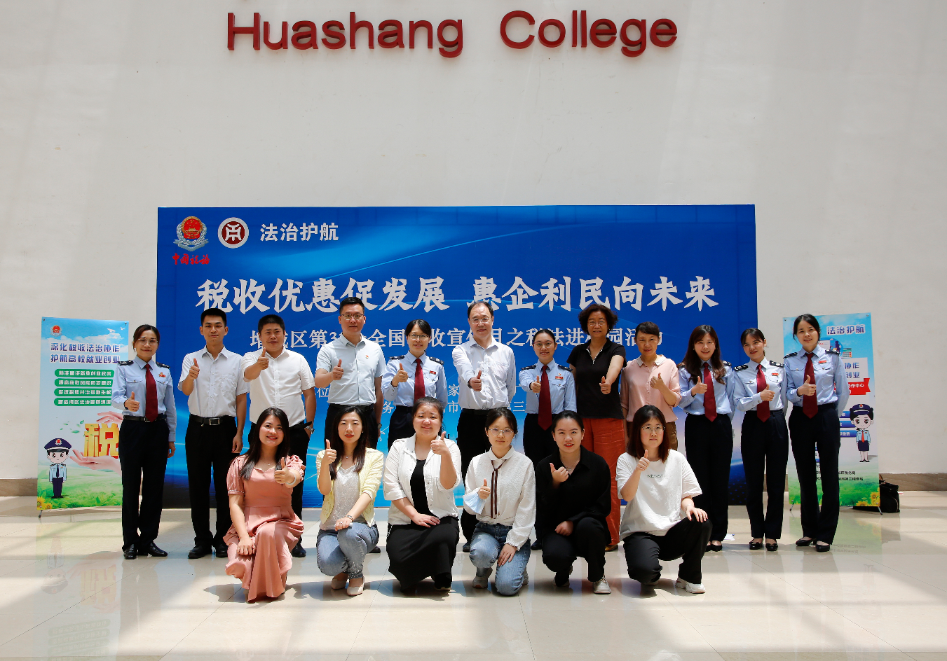 26日上午10时,税法进校园活动于图书馆报告厅线上线下同步举行,国家税务总局广州市增城区税务局与国家税务总局广州市税务局第三稽查局干部,华商学院副校长、会计学院院长陈美华教授,会计学院党委副书记、副院长陈洋广同志,会计学院副院长周书域,会计学院税务系主任高艳荣教授,副主任李志凤以及会计学院师生代表参加了活动。