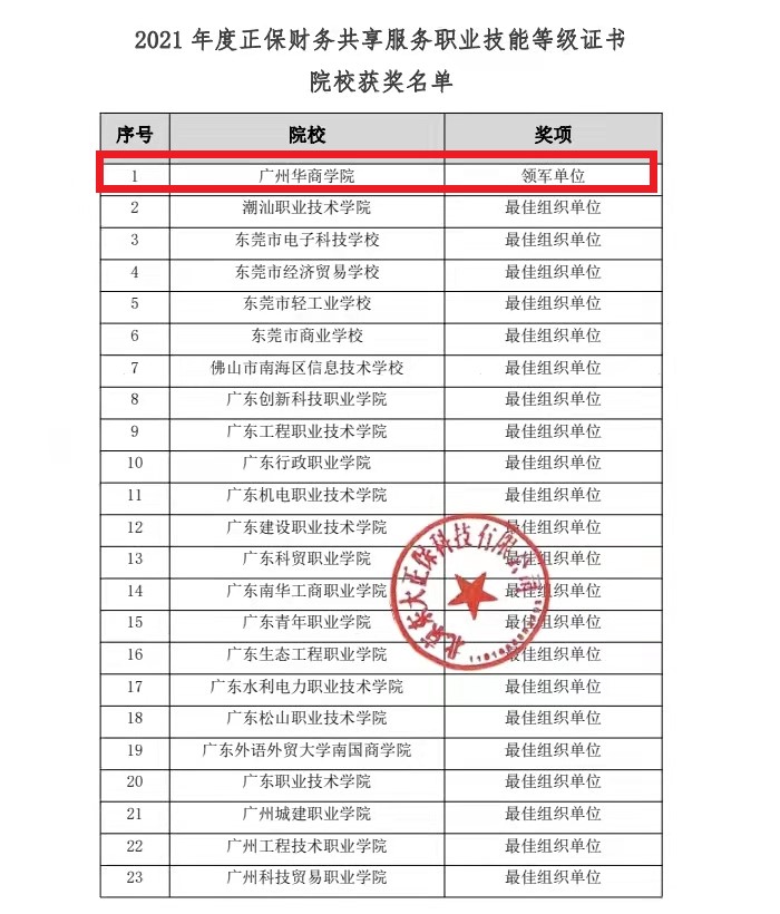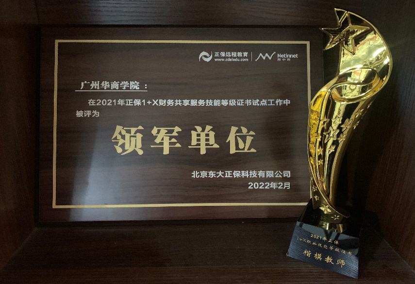 我校高度重视1+X技能等级证书试点工作,我校会计学院在前期积极组织申报试点院校和考核站基础上,组织指导教师与学生参加试点考培工作,形成了以陈美华教授为主导的1+X财务共享服务职业技能等级证书考培教师团队,为推进1+X职业技能等级证书与人才培养融通奠定了坚实的师资基础。我校在2021年正保1+X财务共享服务技能等级证书试点工作喜获佳绩,被授予“领军单位”称号,2021年广东省共有47所院校获奖,我校是唯一获得“领军单位”称号的学校。同时,会计学院陈平老师被授予“楷模教师”称号,刘歆郁、周思达两位老师被授予“匠心育人奖”称号,刘倩、石晟瑛和张晓媛三位老师被授予“杰出贡献奖”称号。