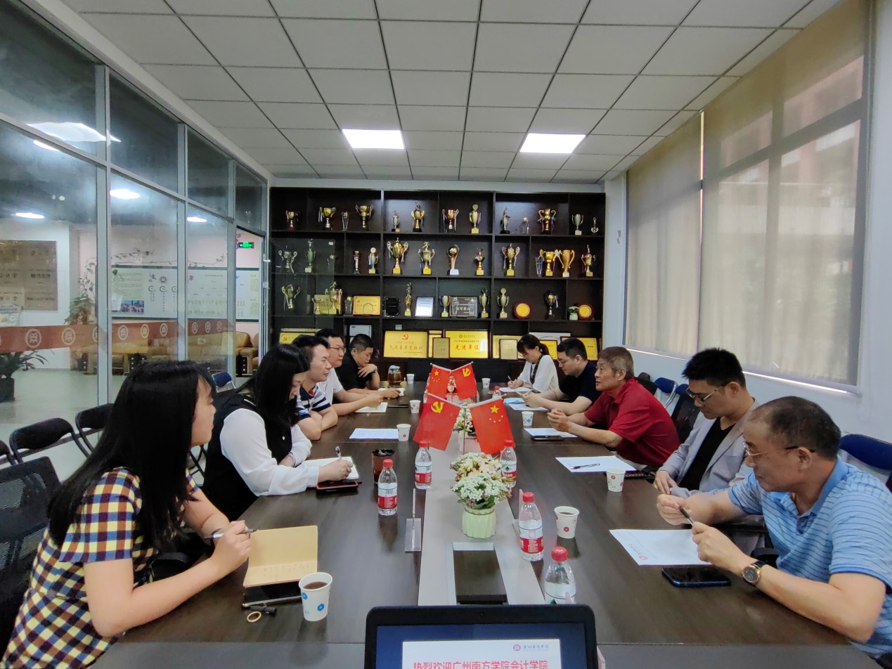 2022年6月10日,广州南方学院会计学院执行院长卫建国,教务处常务副处长吕佩安,会计学院副院长董成杰,学工办主任陈宇桂,办公室主任李晓燕,广州南方学院正保智能产业学院副院长谭毅松,广州南方学院正保智能产业学院院长助理张轲珍一行7人访问我校会计学院。受副校长兼会计学院院长陈美华的委托,会计学院副院长巴雅尔热情接待了卫建国执行院长等领导一行。会计学院党委副书记兼副院长陈洋广,副院长周书域,华商云会计产业学院常务副院长陈平陪同接待并出席交流会议,交流会由副院长巴雅尔主持。